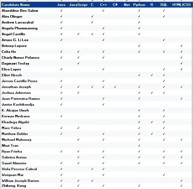 Click or scroll down to view resumes by major/tech discipline: